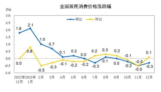 1月12日,國(guó)家統(tǒng)計(jì)局網(wǎng)站最新發(fā)布的數(shù)據(jù)顯示,2023年12月份,全國(guó)居民消費(fèi)價(jià)格同比下降0.3%。2023年全年,全國(guó)居民消費(fèi)價(jià)格比上年上漲0.2%。