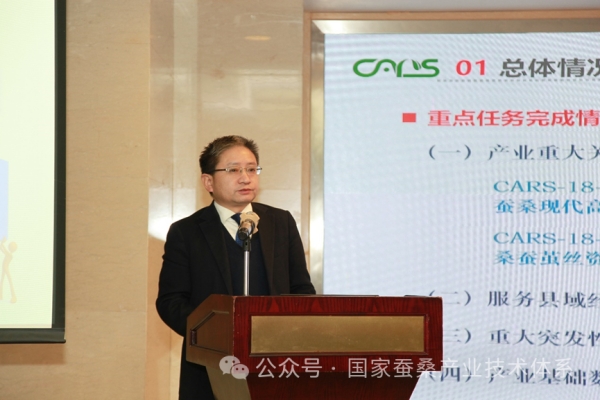 周澤宇處長指出,我國是栽桑養(yǎng)蠶、繅絲織綢的發(fā)祥地,蠶絲業(yè)的發(fā)展已有數(shù)千年的歷史,蠶桑產(chǎn)業(yè)是一二三產(chǎn)業(yè)協(xié)同發(fā)展和大中小企業(yè)融通發(fā)展的典型,目前我國蠶桑產(chǎn)業(yè)具有生產(chǎn)基地進(jìn)一步向優(yōu)勢區(qū)域集中等特點。同時,他指出,目前我國蠶桑產(chǎn)業(yè)發(fā)展還存在國內(nèi)消費市場仍需拓展、經(jīng)營體系升級滯后、繭絲原料生產(chǎn)基地與絲綢加工空間分離、機械化利用偏低等問題。下一步,要繼續(xù)以產(chǎn)業(yè)的“十四五”規(guī)劃為指導(dǎo),強化產(chǎn)業(yè)各方協(xié)作互助,引領(lǐng)蠶桑生產(chǎn)技術(shù)往良種化生產(chǎn)、規(guī)?;耘?、機械化收獲、高效化養(yǎng)殖和多元化利用方向發(fā)展。他強調(diào),蠶桑體系是產(chǎn)業(yè)的智囊和重要的技術(shù)來源,要加強合作,創(chuàng)新方式,及時把專家的成果用在產(chǎn)業(yè)的發(fā)展上,不斷強化蠶桑產(chǎn)業(yè)技術(shù)體系、生產(chǎn)體系和經(jīng)營體系,希望大家同心協(xié)力,共同努力,推動蠶桑產(chǎn)業(yè)高質(zhì)量發(fā)展。