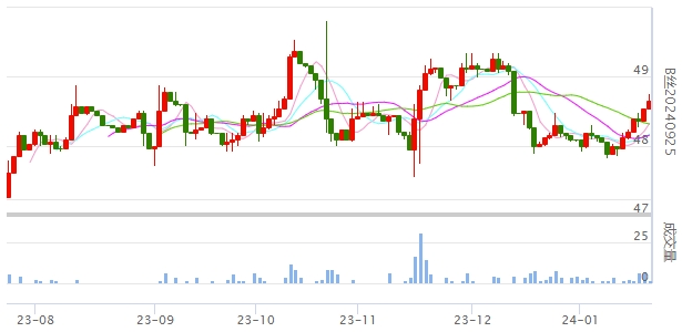 今日(2024年01月19日,周五)中國繭絲綢交易市場生絲指數(shù)上漲0.30%收于4937.62點,本周生絲指數(shù)上漲1.37%。B絲(商檢4A級生絲):240125合約上漲0.21萬元收于49.71萬元;240325合約上漲0.06萬元收于49.89萬元;240925合約上漲0.12萬元收于48.66萬元。