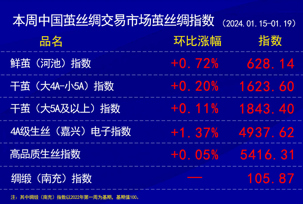 本周中國繭絲綢交易市場繭絲綢指數(shù)