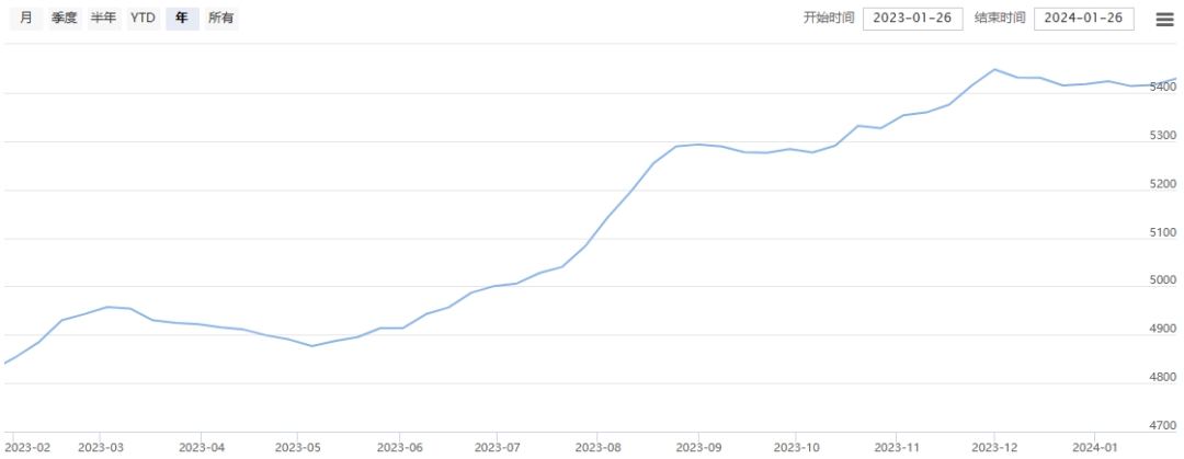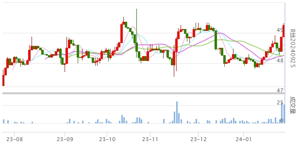 今日(2024年01月26日,周五)中國繭絲綢交易市場生絲指數(shù)上漲0.67%報4999.19點,本周生絲指數(shù)上漲1.25%。B絲(商檢4A級生絲):240325合約上漲0.36萬元報收于50.58萬元;240925合約上漲0.39萬元報收于49.26萬元;250325合約上漲0.45萬元報收于49.26萬元。