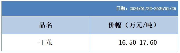 本周高品位生絲協(xié)作單位成交價格區(qū)間