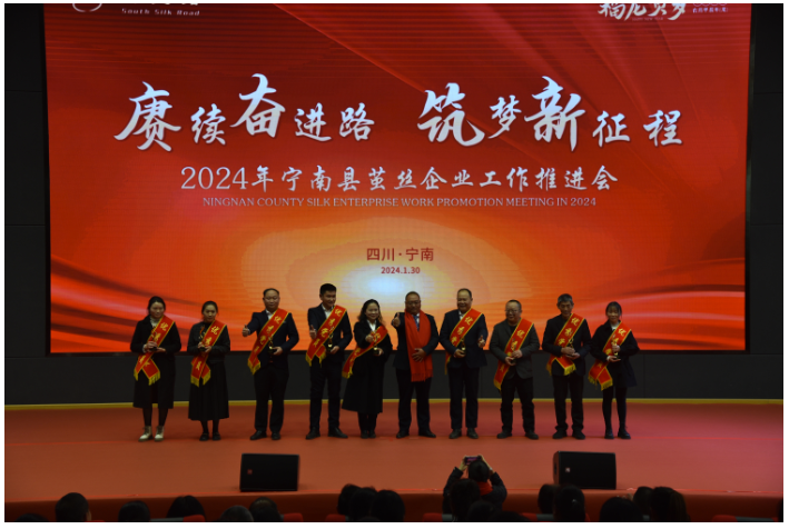 為全面回顧總結(jié)2023年工作開展情況,研究部署2024年工作任務(wù)目標(biāo),加快蠶桑產(chǎn)業(yè)高質(zhì)量發(fā)展步伐。2024年1月30日,南絲路集團、銀鴻誼興首次聯(lián)合召開了繭絲企業(yè)工作推進(jìn)會,南絲路集團、銀鴻絲業(yè)、誼興絲業(yè)、金桑莊園、凱地里拉、金??萍?、奧德絲科、匠心制造的全體干部職工們,1000余人齊聚一堂,奏響2024年的激情序曲。