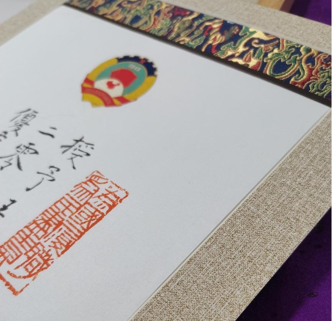優(yōu)秀履職委員現(xiàn)場獲得了一份特別的“紀念”——由四川省非遺公共品牌“川工蜀藝”與青羊蜀錦技藝保護單位“成都尋錦處”特別制作的蜀錦獎狀。獎狀上的蜀錦紋樣是著名的國寶五星出東方利中國錦,蜀錦上裝裱了來自四川夾江的竹宣,并由我省知名書法家手書委員名字和表揚文字,整體設計既有中國韻味,又具四川特色。