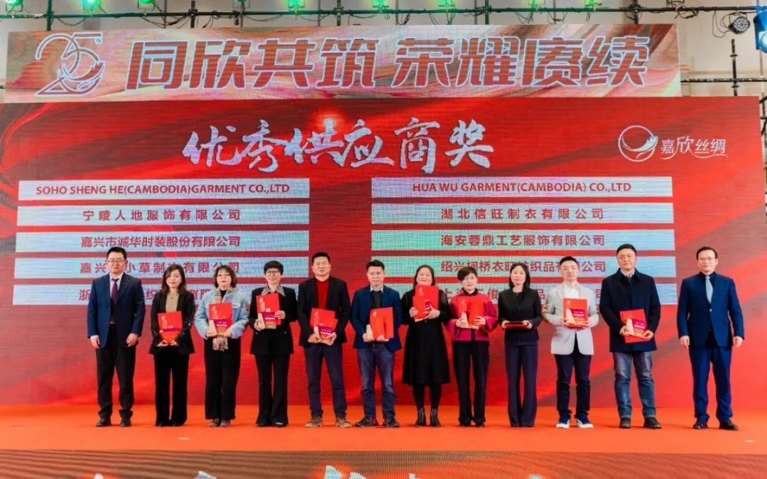 慶典上向兢兢業(yè)業(yè)、為嘉欣絲綢的發(fā)展做出了重要貢獻的個人和緊密合作、攜手并進的供應商朋友頒發(fā)獎項。