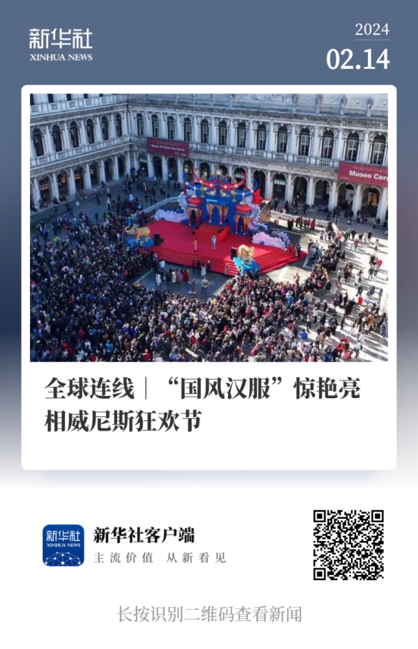 新華社對(duì)蘇州絲綢服飾威尼斯狂歡節(jié)巡游進(jìn)行了46分鐘的線上直播,并對(duì)巡游活動(dòng)做了中意英三語(yǔ)報(bào)道,收看量130.4萬(wàn)人次。