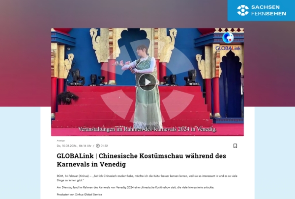 德國(guó)電視臺(tái)Sachsen Fernsehen對(duì)蘇州絲綢服飾威尼斯狂歡節(jié)巡游進(jìn)行了報(bào)道。