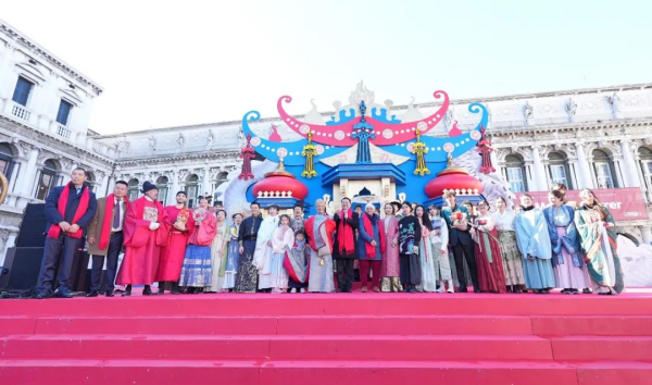 蘇州絲綢服飾威尼斯狂歡節(jié)巡游正值中國(guó)龍年新春佳節(jié),在世界著名水城威尼斯“歐洲最美會(huì)客廳”圣馬可廣場(chǎng)的舉辦,吸引3萬(wàn)當(dāng)?shù)厥忻窈褪澜缬慰婉v足觀看,得到了國(guó)內(nèi)外的廣泛關(guān)注和好評(píng)。