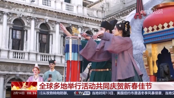 央視在大年初五的朝聞天下和大年初六的新聞聯(lián)播中對(duì)蘇州絲綢服飾威尼斯狂歡節(jié)巡游進(jìn)行了報(bào)道。