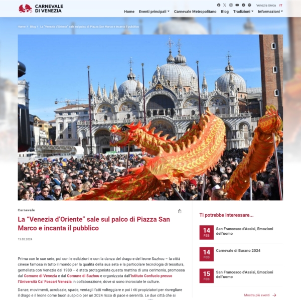 此外意大利威尼斯政府狂歡節(jié)官網(wǎng)、VENEZIATODAY、la Nuova Venezia、Giornale d'italia、the nanjinger等多家意大利主流媒體對(duì)活動(dòng)進(jìn)行了專題報(bào)道。