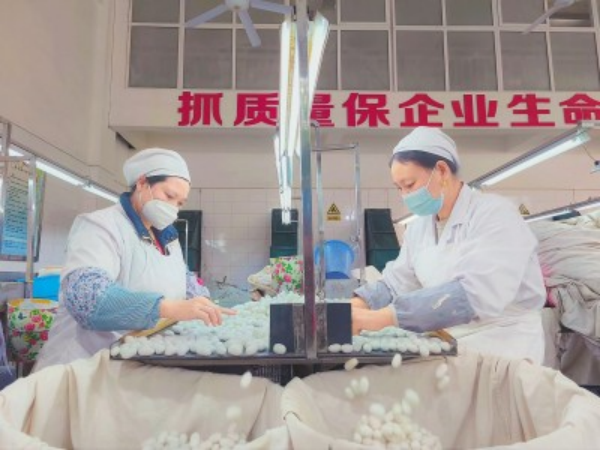 此外,寧南縣橫向綜合開發(fā),聚力全產(chǎn)業(yè)鏈發(fā)展,對下足繭、桑葉、桑枝等蠶桑副產(chǎn)物進行綜合開發(fā)和精深加工,形成產(chǎn)品,推向市場。目前,全縣已形成蠶絲被、蠶砂保健枕、桑葉茶、桑枝食用菌、桑葚膏、桑葚酒、真絲家紡等7大品類20項產(chǎn)品的產(chǎn)業(yè)鏈條。