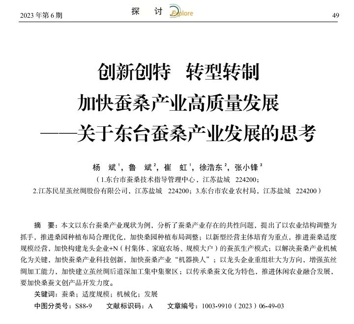 文章作者:楊斌,魯斌,崔虹,徐浩東,張小鋒 (東臺(tái)市蠶桑技術(shù)指導(dǎo)管理中心,江蘇民星繭絲綢股份有限公司,東臺(tái)市農(nóng)業(yè)農(nóng)村局)