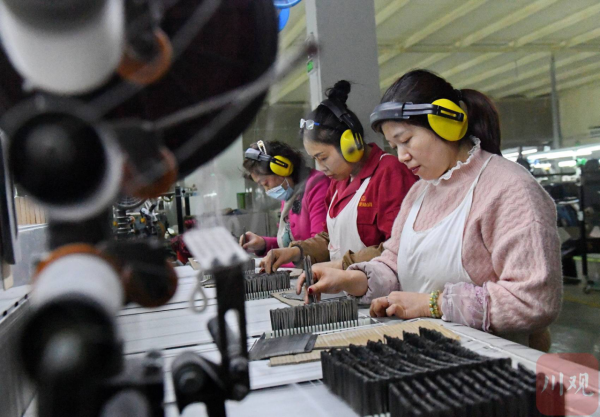 2月21日,在位于四川省南充市嘉陵工業(yè)集中區(qū)的四川順成紡織有限公司紡織車間,翻絲工正在把成片絲進(jìn)行上架處理