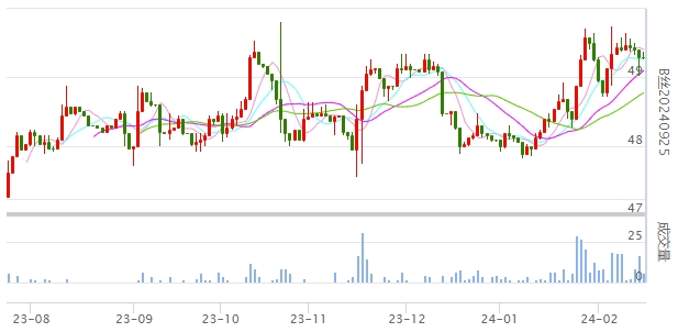 今日(2024年02月23日,周五)中國繭絲綢交易市場生絲指數(shù)微漲0.06%收于5077.51點(diǎn),本周生絲指數(shù)上漲0.23%。B絲(商檢4A級生絲):240325合約上漲0.06萬元報(bào)收于51.90萬元;240925合約報(bào)平收于49.29萬元;250325合約報(bào)平收于49.50萬元。
