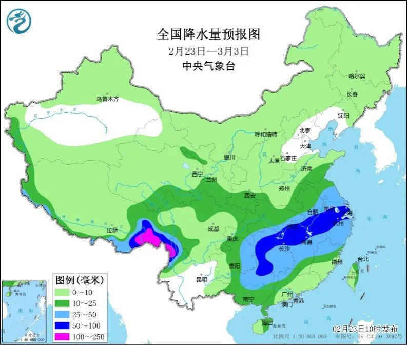 再關(guān)注全國天氣。根據(jù)中央氣象臺(tái),未來10天(2月23日至3月3日),黃淮南部、江漢、江淮、江南北部和西部、華南中西部及貴州東部、重慶、西藏東南部等地累計(jì)降水量有15~30毫米,部分地區(qū)40~70毫米;西北地區(qū)、華北西部和北部、東北地區(qū)中北部、黃淮北部累計(jì)降水量有3~8毫米,青海東南部、甘肅南部、陜西南部等地的部分地區(qū)有10~20毫米;上述大部地區(qū)降水量較常年同期偏多4~7成,局地偏多1倍以上。