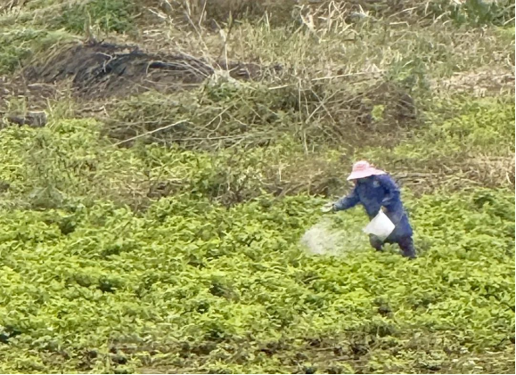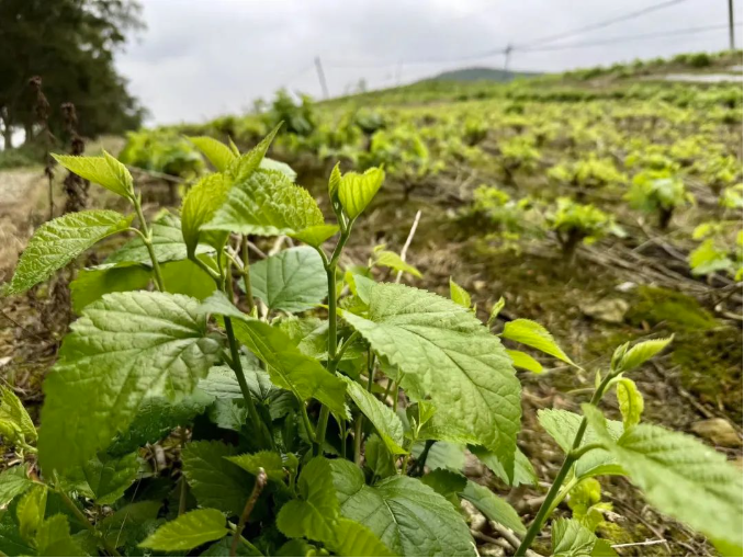 今日宜州桑園。宜州今日有雨,蠶農(nóng)抓緊時(shí)機(jī)給桑園施肥。