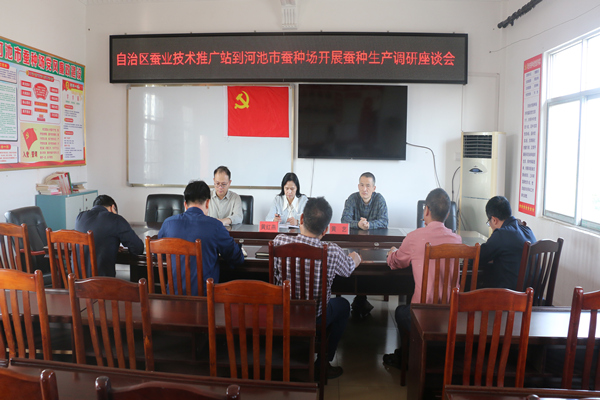 調(diào)研組先后到玉林市興業(yè)縣華盛蠶業(yè)科技有限責(zé)任公司、河池市蠶種場、河池市宜州區(qū)蠶業(yè)技術(shù)推廣站、廣西益佳桑蠶養(yǎng)殖有限責(zé)任公司、百色市華農(nóng)瑞澤蠶業(yè)有限責(zé)任公司、廣西南寧市邕州蠶種有限公司等單位調(diào)研,通過實(shí)地考察、座談交流以及走訪小蠶共育合作社等形式,深入了解蠶種生產(chǎn)企業(yè)當(dāng)前的生產(chǎn)經(jīng)營情況、各地區(qū)桑園苗情及蠶種市場的需求情況。