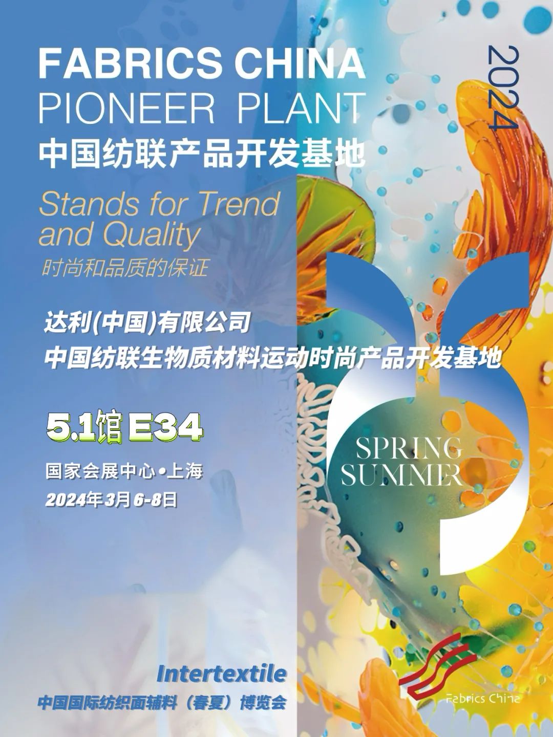 Intertextile中國國際紡織面輔料(春夏)博覽會3月6-8日 上海國家會展中心展位:5.1館 E34
