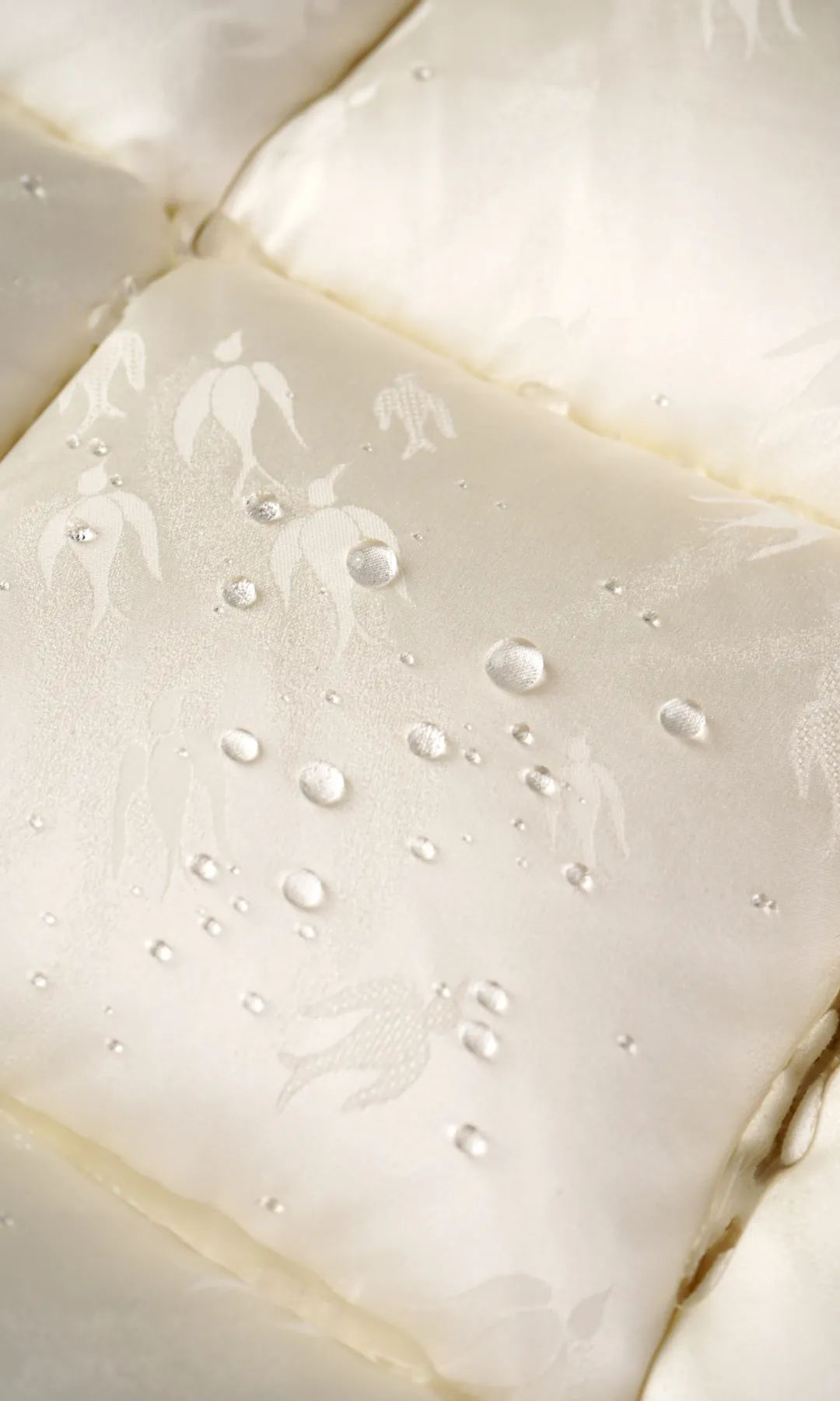 「水之舞」真絲面料的出現(xiàn),打破了絲綢春夏的季節(jié)限制,讓真絲成為高級戶外服裝和羽絨服的新選?!杆琛狗浪?、防油、防污面料是一種具有多重優(yōu)良性能的面料,更能滿足戶外運動服和秋冬高級羽絨服對優(yōu)質面料的需要。