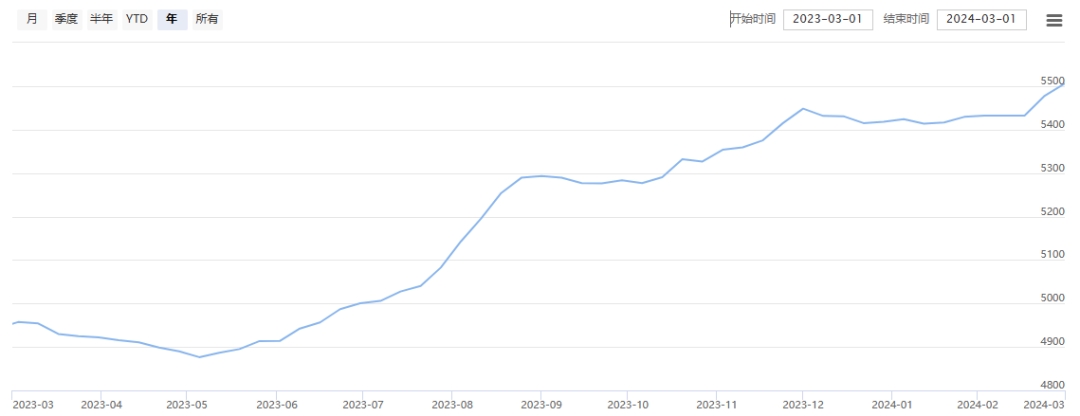 今日(2024年03月01日,周五)中國(guó)繭絲綢交易市場(chǎng)生絲指數(shù)上漲0.34%收于5170.72點(diǎn),本周生絲指數(shù)上漲1.84%。B絲(商檢4A級(jí)生絲):240325合約上漲0.30萬(wàn)元報(bào)收于53.37萬(wàn)元;240925合約上漲0.09萬(wàn)元報(bào)收于49.80萬(wàn)元;250325合約上漲0.09萬(wàn)元報(bào)收于50.04萬(wàn)元。
