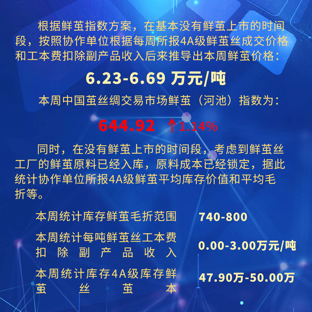 本周中國(guó)繭絲綢交易市場(chǎng)繭絲綢指數(shù)
