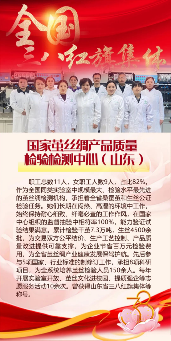 行業(yè)新聞丨國家繭絲綢產(chǎn)品質(zhì)量檢驗檢測中心(山東)榮獲全國三八紅旗集體稱號