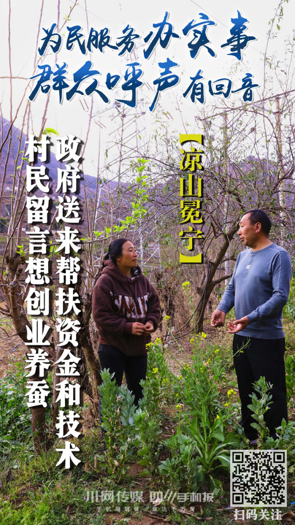 川網(wǎng)傳媒·麻辣社區(qū)和四川手機報長期聚焦民生,致力于搭建平臺,切實聚焦群眾“急難愁盼”,力解民生難題。在問題得到解決后,四川手機報又將辦理情況,及時、精準發(fā)送至群眾手中,做到為民服務(wù)辦實事,件件有落實,事事有回音,搭建好黨委政府為民辦事連心橋。本期《為民服務(wù)辦實事》聚焦涼山州冕寧縣扶持返鄉(xiāng)村民發(fā)展蠶桑產(chǎn)業(yè),振興鄉(xiāng)村。