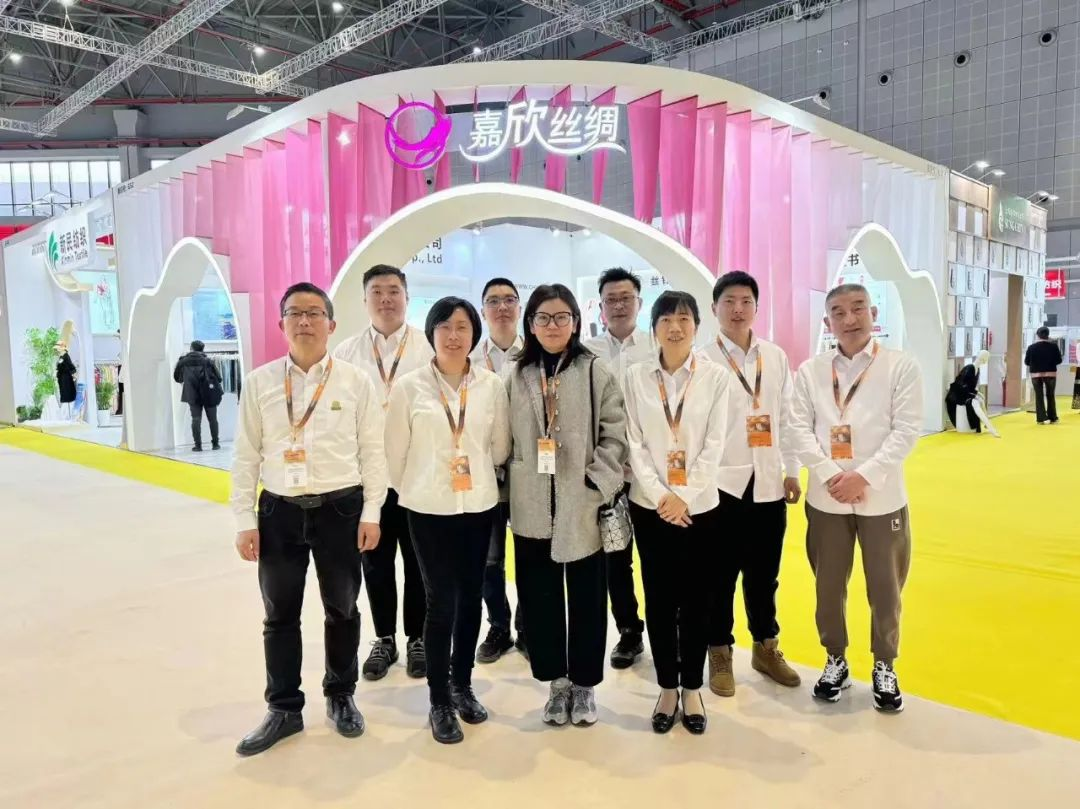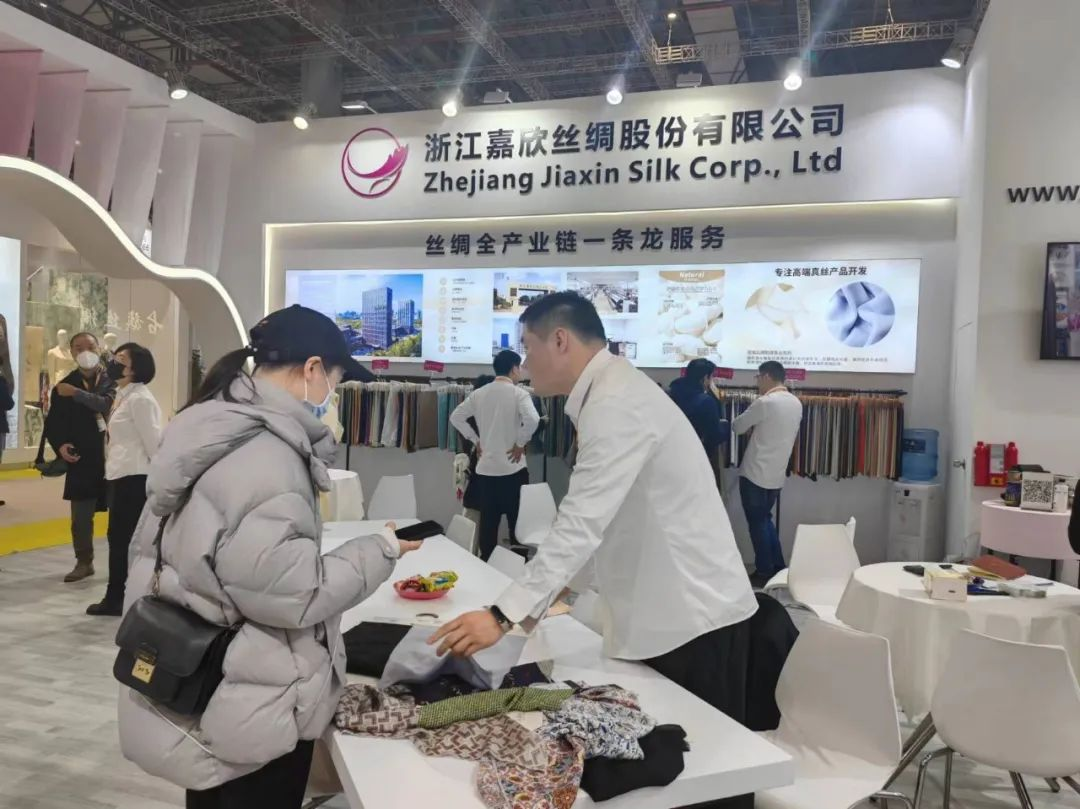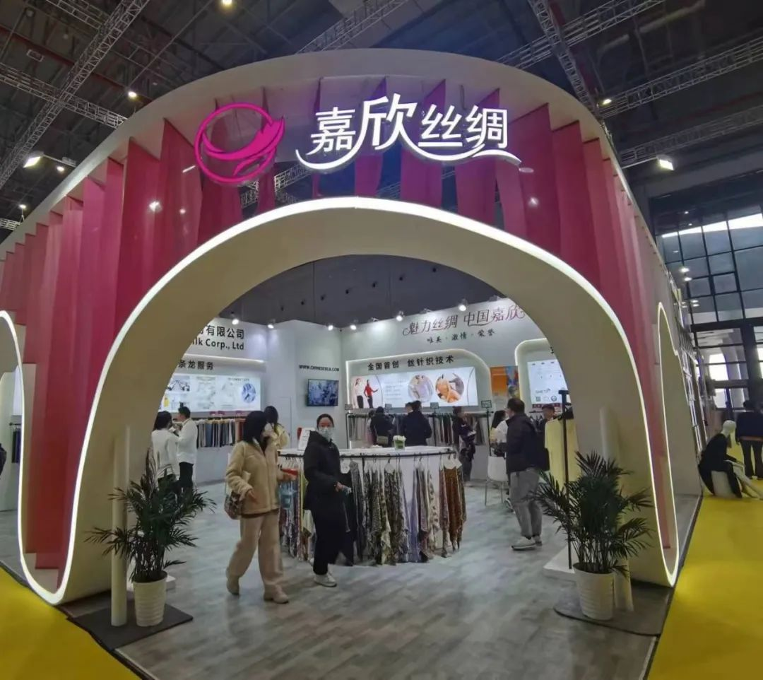 本次展會(huì)上,嘉欣絲綢的展位由面料出口總部板塊、金三塔絲針織板塊和特欣織造板塊精心組成。