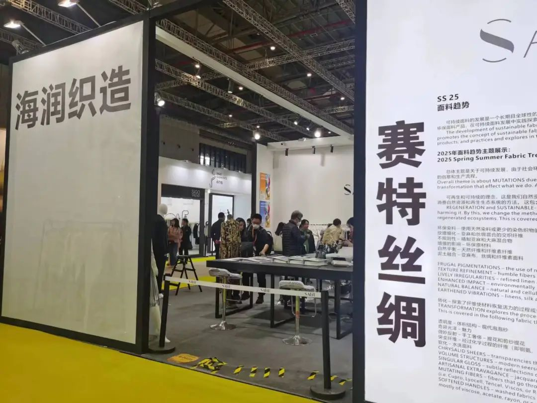 今日是開(kāi)展的第一天,展館內(nèi)人潮如織的場(chǎng)景隨處可見(jiàn),展位內(nèi)、對(duì)接區(qū)中,紡織人馬不停蹄地累并快樂(lè)著。絲綢行業(yè)的展位主要集聚在面輔料區(qū),在其他三區(qū),今年參展的絲綢企業(yè)和產(chǎn)業(yè)集群也穿插其間。參展的絲綢企業(yè)們蓄勢(shì)待發(fā),積極加強(qiáng)創(chuàng)新融合,豐富創(chuàng)新應(yīng)用場(chǎng)景,緊抓國(guó)內(nèi)大市場(chǎng)的機(jī)遇與挑戰(zhàn),在引領(lǐng)絲綢行業(yè)進(jìn)一步破題新賽道突圍、高質(zhì)量發(fā)展的路徑選擇上發(fā)揮著良好的領(lǐng)跑作用。