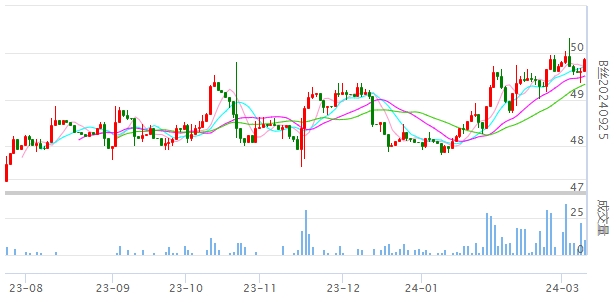 今日(2024年03月11日,周一)中國(guó)繭絲綢交易市場(chǎng)生絲指數(shù)上漲0.43%收于5165.59點(diǎn)。B絲(商檢4A級(jí)生絲):240325合約上漲0.09萬(wàn)元報(bào)收于53.40萬(wàn)元;240925合約上漲0.24萬(wàn)元報(bào)收于49.86萬(wàn)元;250325合約上漲0.27萬(wàn)元報(bào)收于50.04萬(wàn)元。