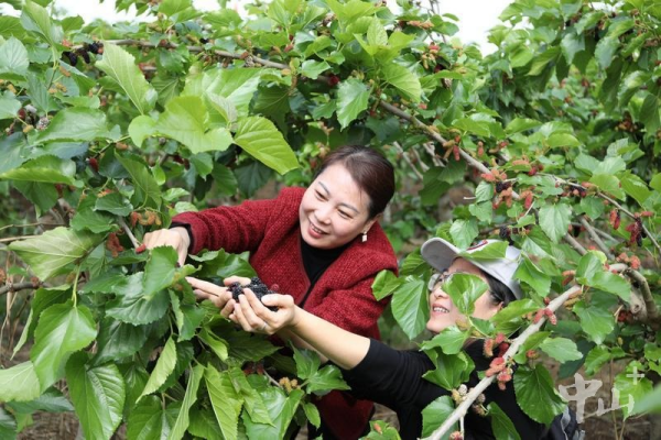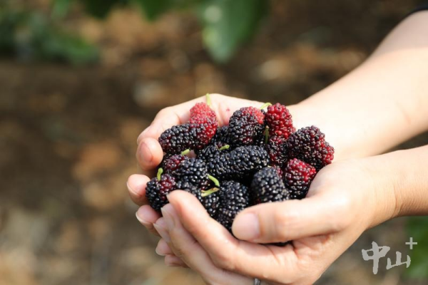 市民游客采摘的桑果