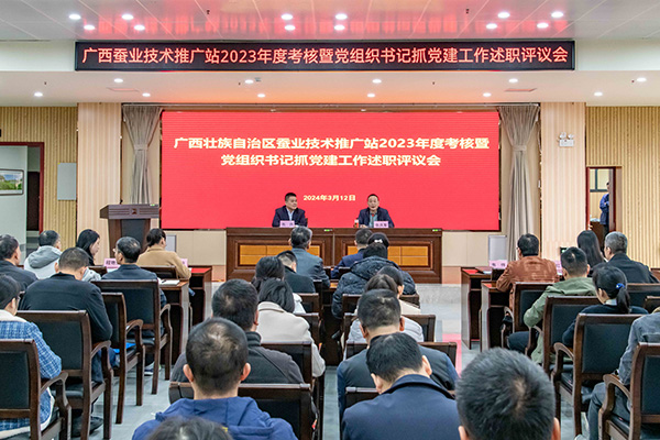3月12日上午,自治區(qū)農(nóng)業(yè)農(nóng)村廳直屬單位2023年度考核工作組第七小組在農(nóng)產(chǎn)品質(zhì)量安全監(jiān)管處處長(zhǎng)張慶軍帶領(lǐng)下到廣西蠶業(yè)技術(shù)推廣站開展2023年度考核暨黨組織書記抓黨建工作述職評(píng)議工作。廣西蠶業(yè)技術(shù)推廣站全站在職在編人員參加述職評(píng)議會(huì)。