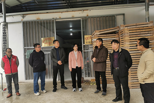 在宜州區(qū)小蠶共育室調(diào)研指導(dǎo)