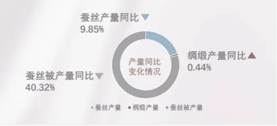 2023年1-12月,全國規(guī)模以上絲綢企業(yè)蠶絲產(chǎn)量同比下降9.85%,緞產(chǎn)量同比增長0.44%,蠶絲被產(chǎn)量同比下降40.32%。