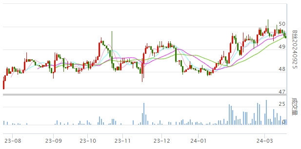 今日(2024年03月19日,周二)中國(guó)繭絲綢交易市場(chǎng)生絲指數(shù)下跌0.15%收于5125.26點(diǎn)。B絲(商檢4A級(jí)生絲):240325合約下跌0.06萬(wàn)元報(bào)收于53.07萬(wàn)元;240925合約下跌0.09萬(wàn)元報(bào)收于49.50萬(wàn)元;250325合約報(bào)平收于49.71萬(wàn)元。