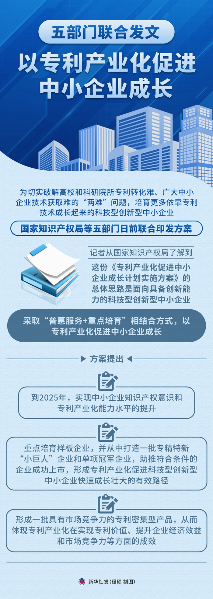 為切實(shí)破解高校和科研院所專利轉(zhuǎn)化難、廣大中小企業(yè)技術(shù)獲取難的“兩難”問題,培育更多依靠專利技術(shù)成長起來的科技型創(chuàng)新型中小企業(yè),國家知識(shí)產(chǎn)權(quán)局等五部門日前聯(lián)合印發(fā)方案。