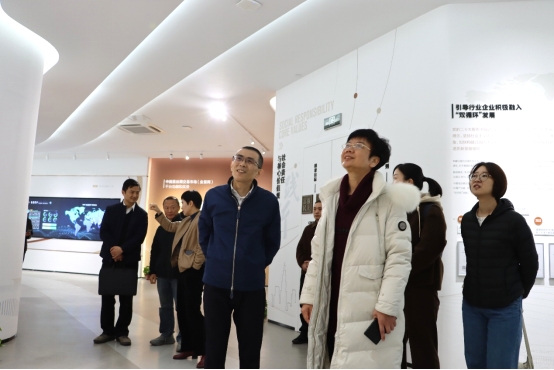 座談會前,龐筱寧一行參觀了市場展廳,仔細了解了市場30年發(fā)展歷程、市場五大服務板塊內容及市場系列價格指數(shù)等服務繭絲綢行業(yè)企業(yè)發(fā)展的創(chuàng)新舉措和功能作用。
