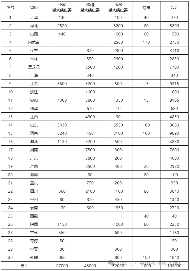 近日,農(nóng)業(yè)農(nóng)村部辦公廳下發(fā)《2024年“蟲口奪糧”保豐收行動方案》的通知。通知中表示,據(jù)全國農(nóng)作物病蟲害測報網(wǎng)監(jiān)測和專家會商分析,預計2024年農(nóng)作物重大病蟲害呈重發(fā)態(tài)勢,全國預計發(fā)生面積23.3億畝次,比2023年和近5年實際發(fā)生面積分別增加26.2%和18.4%,對70%以上的農(nóng)作物產(chǎn)區(qū)構(gòu)成威脅,需加大組織力度,采取有效措施,堅決遏制暴發(fā)危害勢頭,最大限度降低危害損失,實現(xiàn)“蟲口奪糧”保豐收。