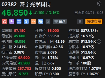 電子零件板塊低迷,舜宇光學(xué)科技績后跌超13%。消息面上,舜宇2023年收入316.8億元,同比跌4.6%,且低于市場(chǎng)預(yù)期的323.1億元;純利約11億元,同比跌54.3%,且低于市場(chǎng)預(yù)期的12.7元;毛利同比跌30.5%至45.9億元,毛利率跌5.4個(gè)百分點(diǎn)至14.5%。派末期股息每股0.219港元,同比跌56.2%,股息率約0.4%。