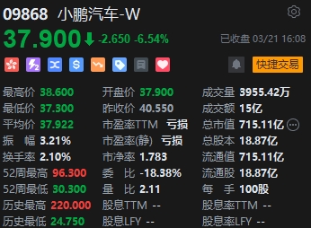 小鵬汽車挫逾6%。消息面上,當(dāng)?shù)貢r(shí)間3月20日,小鵬汽車在美國證券交易委員會(huì)提交的文件顯示,阿里巴巴旗下淘寶中國控股有限公司(Taobao China Holding Limited)計(jì)劃出售3300萬份小鵬汽車ADS,總價(jià)值約3.14億美元(約22.61億元人民幣)。這并不是阿里首次減持小鵬。去年12月,阿里曾出售小鵬汽車2500萬份ADS,總價(jià)值約3.91億美元(約27.68億元人民幣)。兩次出售的ADS均為2019年9月12日作為IPO前投資所購得的。