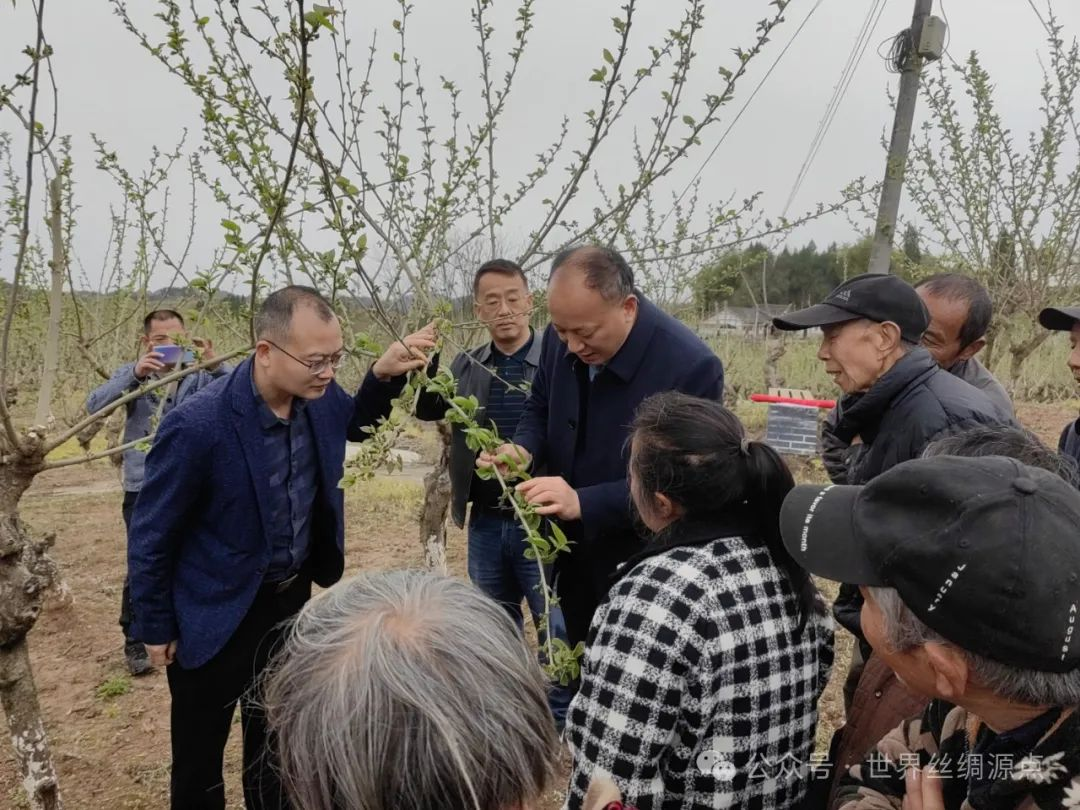 3月15日,劉剛一行實(shí)地查看了嘉陵區(qū)大通鎮(zhèn)連片果?;氐奶镩g管理和桑樹(shù)發(fā)育情況,隨著氣溫回升,桑樹(shù)逐漸進(jìn)入開(kāi)花期,正是桑椹菌核病與椹癭蚊防治關(guān)鍵時(shí)期,為確保桑樹(shù)“一病一蟲(chóng)”有效防治,劉剛與嘉陵區(qū)蠶桑中心主任黃聰、鄉(xiāng)鎮(zhèn)主要負(fù)責(zé)同志一起商討了應(yīng)對(duì)措施,確定了本次培訓(xùn)會(huì)的具體內(nèi)容與實(shí)施方案。3月17日,在大通鎮(zhèn)麻感壩村,劉剛為當(dāng)?shù)氐墓7N植業(yè)主開(kāi)展了桑椹菌核病防控技術(shù)培訓(xùn),根據(jù)桑椹菌核病發(fā)病規(guī)律、防治方法、用藥要求及注意事項(xiàng)等方面,作了詳細(xì)講解和現(xiàn)場(chǎng)答疑,并進(jìn)行實(shí)操演示,大通鎮(zhèn)30余戶果桑種植戶參加了本次培訓(xùn)。同時(shí),桑樹(shù)中心積極采用線下與線上相結(jié)合等方式,指導(dǎo)全省各地果桑種植戶根據(jù)當(dāng)?shù)貧夂颦h(huán)境抓住關(guān)鍵窗口期開(kāi)展桑椹菌核病與椹癭蚊防治,為今年的果桑優(yōu)質(zhì)高產(chǎn)奠定了基礎(chǔ)。