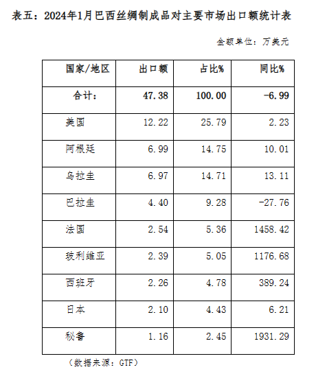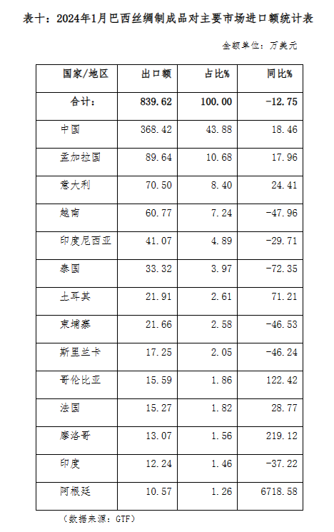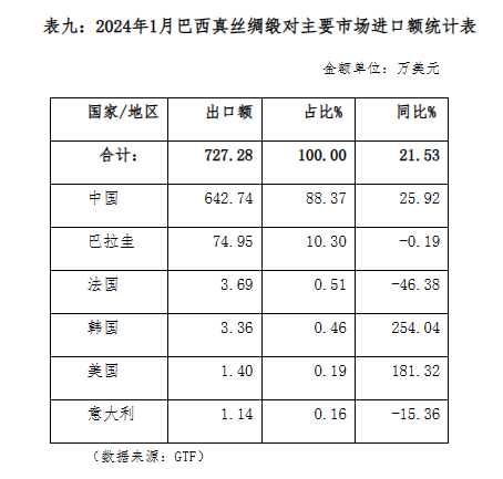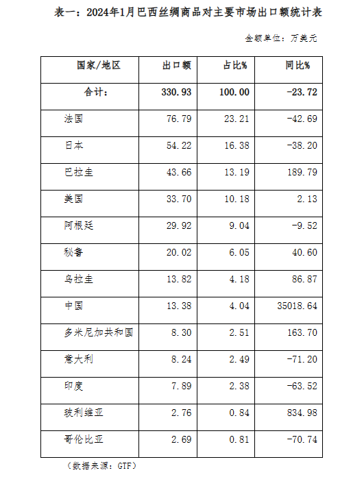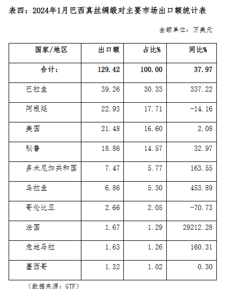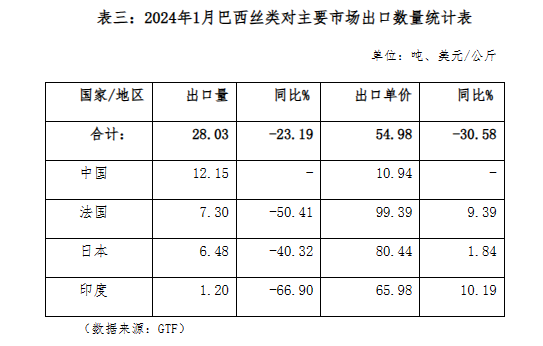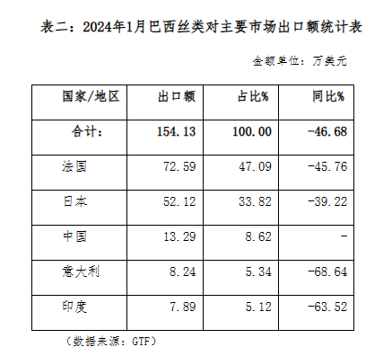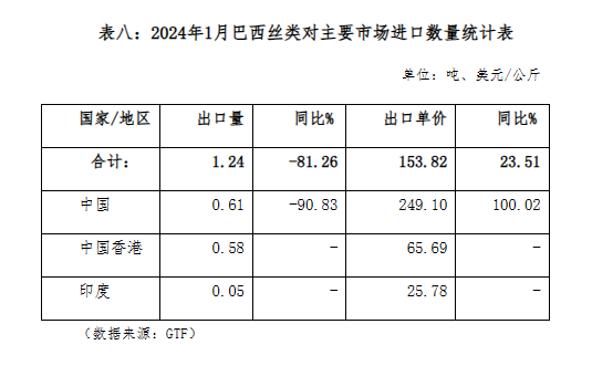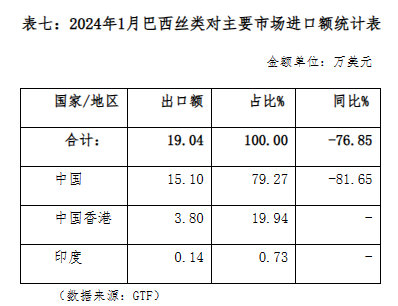 數(shù)據(jù)丨2024年1月巴西絲綢商品貿(mào)易統(tǒng)計(jì)簡(jiǎn)報(bào)