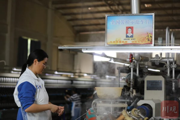 宣講結(jié)束,晏魯作帶記者走進(jìn)公司繅絲車間,只聽見機(jī)器“沙沙”作響。她換上工裝,熟練地做起繭絲的索緒、理緒、捻緒、添緒、接緒等工作。