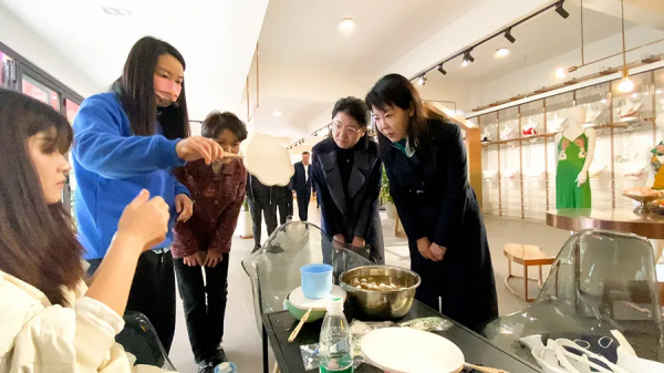 考察團(tuán)一行先后參觀了江南繅絲博物館大樓、華佳蠶桑科普館、江南蠶農(nóng)之家、江南繅絲博物館、華佳時(shí)尚館、紅石榴家園、桑羅品牌展廳。
