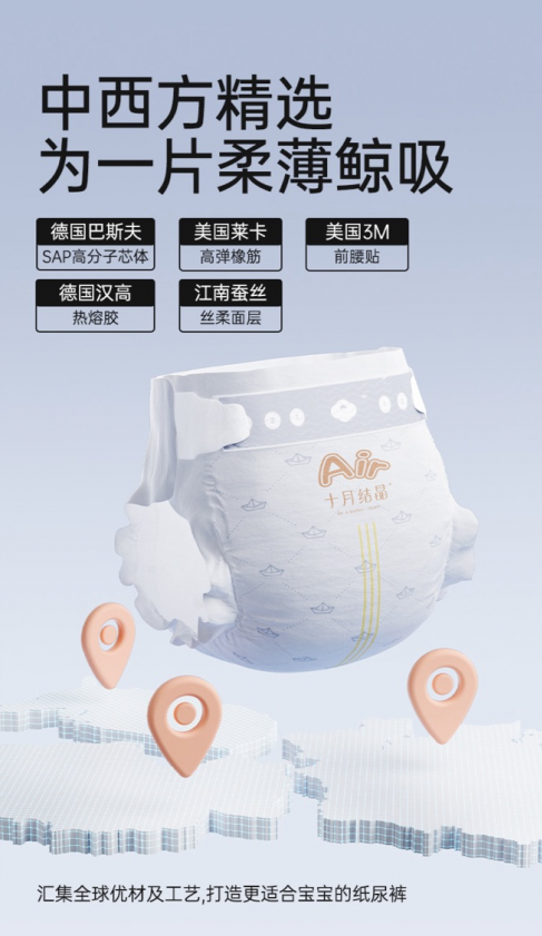 除了核心原材料外,十月結(jié)晶蠶絲奢柔紙尿褲還注重全球范圍內(nèi)優(yōu)質(zhì)材質(zhì)的選擇和引進(jìn)。品牌與多家國際知名供應(yīng)商建立長期合作關(guān)系,確保每一片紙尿褲都能使用到最優(yōu)質(zhì)、最安全的原材料。