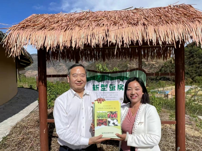 在甘洛縣桑旅融合現(xiàn)代農(nóng)業(yè)產(chǎn)業(yè)園區(qū)核心區(qū)--田壩鎮(zhèn)羅群村,工作組根據(jù)當(dāng)?shù)氐男Q桑資源優(yōu)勢(shì),推薦四川善恒文化傳播有限公司投資桑蠶平板絲生產(chǎn)項(xiàng)目落戶(hù)羅群村,并就平板絲生產(chǎn)技術(shù)路線、營(yíng)運(yùn)模式、市場(chǎng)前景、經(jīng)濟(jì)和社會(huì)效益等方面的情況與甘洛縣商會(huì)、甘洛縣桑梓源農(nóng)業(yè)公司、甘洛縣日升昌種植專(zhuān)業(yè)合作社以及羅群村負(fù)責(zé)人進(jìn)行了深入交流和商談。工作組表示,省絲綢院和四川上實(shí)將在蠶品種選擇、平面物材料的確定、吐絲管理、生態(tài)環(huán)保等方面提供全方位的技術(shù)支持,并希望此項(xiàng)目在該村取得成功后,能夠發(fā)揮示范帶動(dòng)作用,推廣輻射到包括嘎日鄉(xiāng)在內(nèi)的甘洛縣其他宜桑宜蠶區(qū)域,助力甘洛縣經(jīng)濟(jì)社會(huì)高質(zhì)量發(fā)展。座談會(huì)上,程明還向羅群村贈(zèng)送了省絲綢院編寫(xiě)的《蠶桑生產(chǎn)技術(shù)規(guī)程匯編》等培訓(xùn)教材。