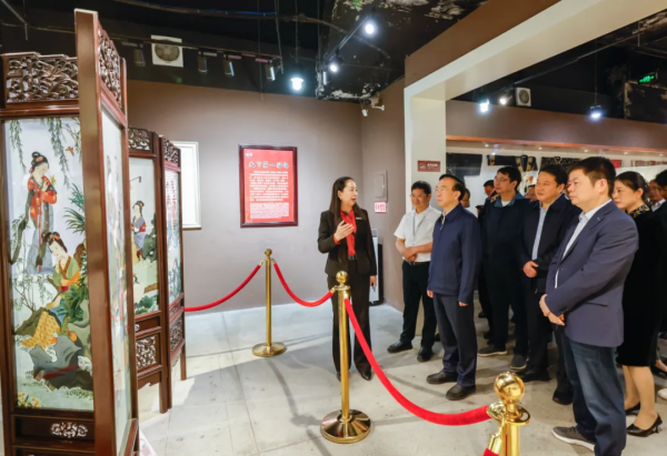 謝瑞武一行實地考察了四川絲綢博物館、蜀錦工坊、錦華館、古桑大道及蜀繡大師工作室、非遺大師工作室。與蜀錦蜀繡傳承大師進行了深入的交談,認真聽取他們對高質(zhì)量發(fā)展蜀錦、蜀繡產(chǎn)業(yè)的建議,并詳細了解了蜀錦、蜀繡的歷史、傳承、創(chuàng)新、設計、現(xiàn)狀、生產(chǎn)經(jīng)營情況等。