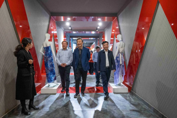 在四川安泰繭絲綢集團有限公司,調研組成員通過看展廳、聽匯報的方式詳細了解了武勝的絲綢文化、蠶桑產業(yè)發(fā)展歷程、絲綢品質及絲綢銷售情況,并對企業(yè)所獲得的各類榮譽給予了高度的贊揚。