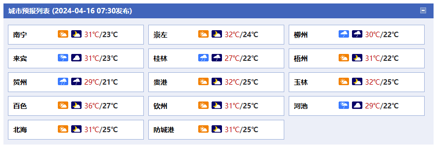 廣西氣象臺(tái)16日05時(shí)發(fā)布預(yù)報(bào):