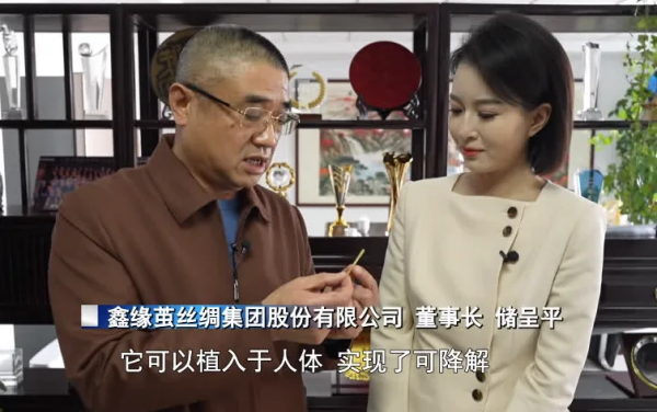 鑫緣繭絲綢集團股份有限公司董事長儲呈平:它可以植入于人體,實現(xiàn)了可降解,使患者免受二次手術(shù)再取骨釘之苦。